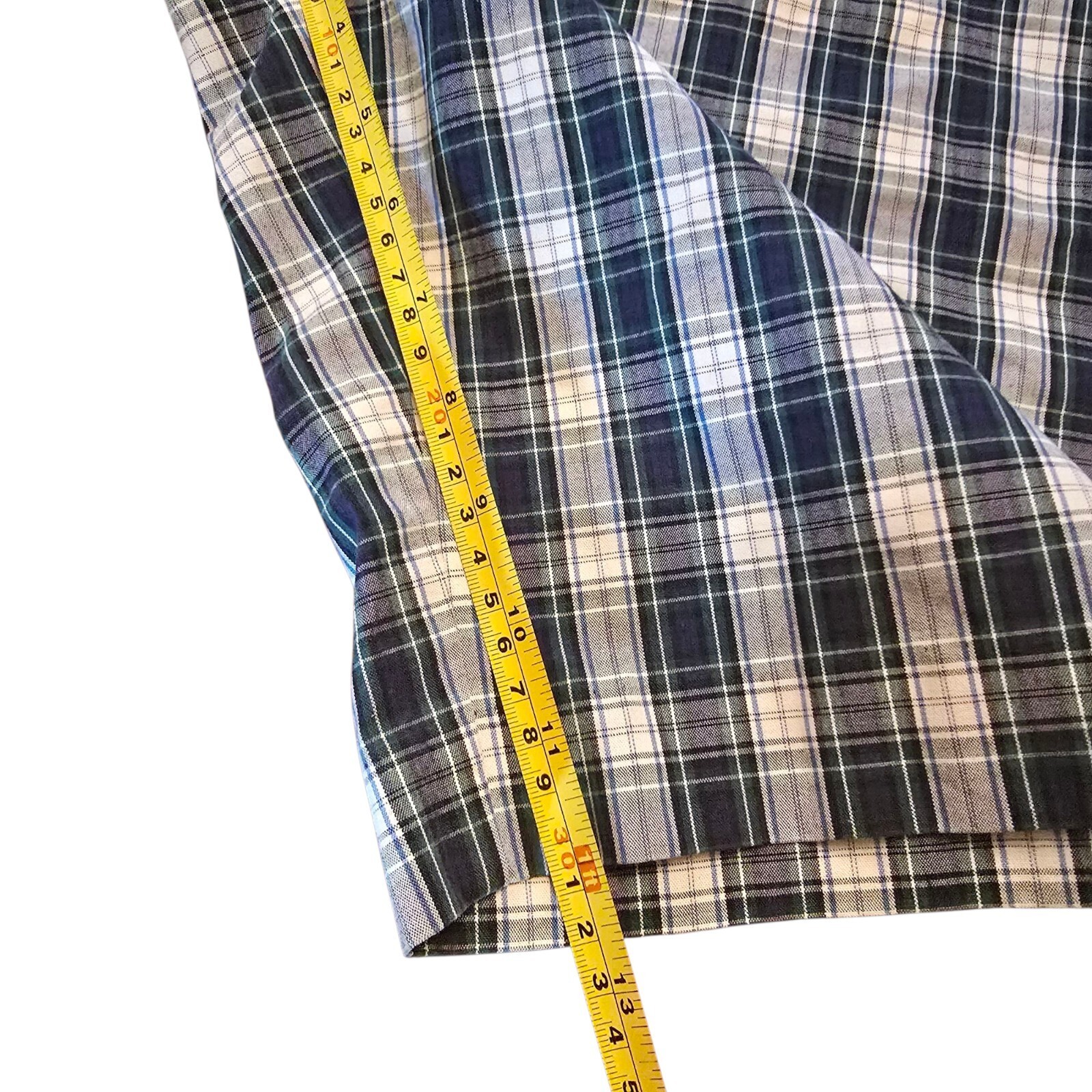 Upgrade your summer wardrobe with these classic Polo Ralph Lauren Men's Plaid Shorts in size 36. Featuring a timeless blue and white plaid pattern, these preppy shorts are perfect for casual outings, vacations, or laid-back weekends. Designed with comfort in mind, they include a button closure, zip fly, belt loops, and side/back pockets.