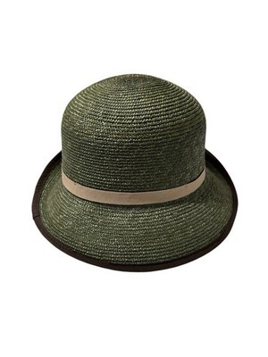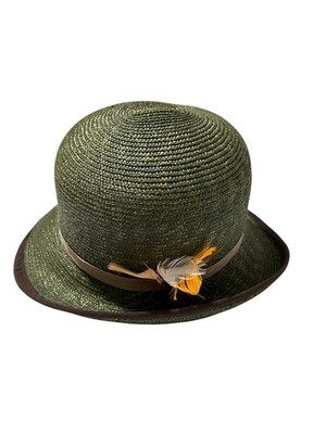 Goorin Bros Women's Hat Ms. Melissa Cloche Wheat Straw Hat Olive Green Rare HTF