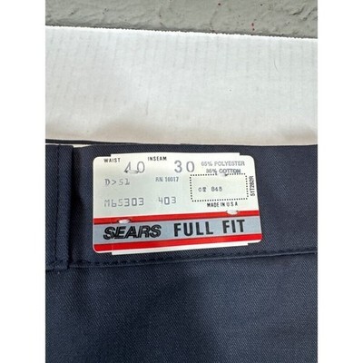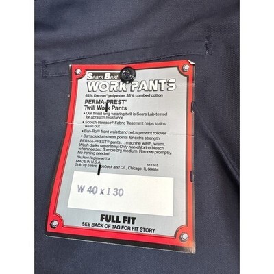 Sears Perma-Prest Twill Workpants Dark Blue Mens Size 40x30 Full Fit Vintage NWT