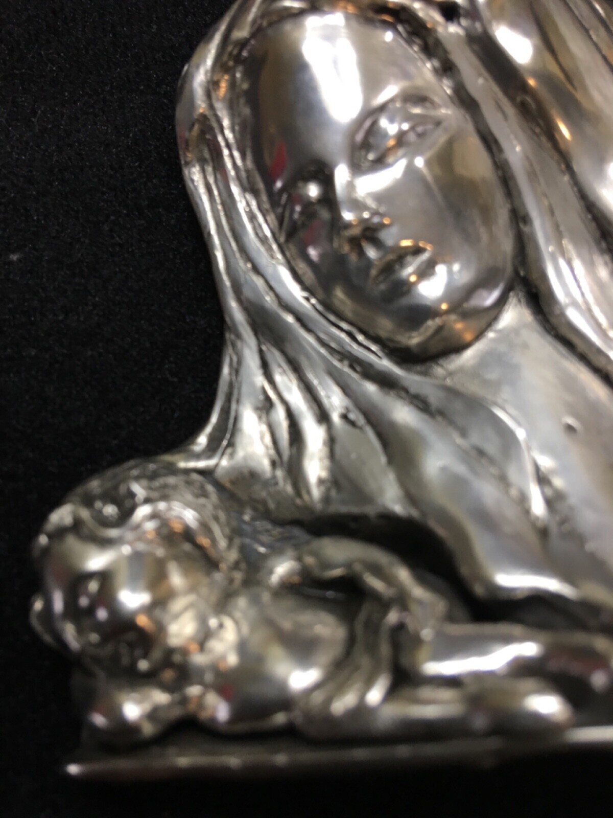 Custom made Sterling silver Madonna and Christ Child Bronze Base candle Icon