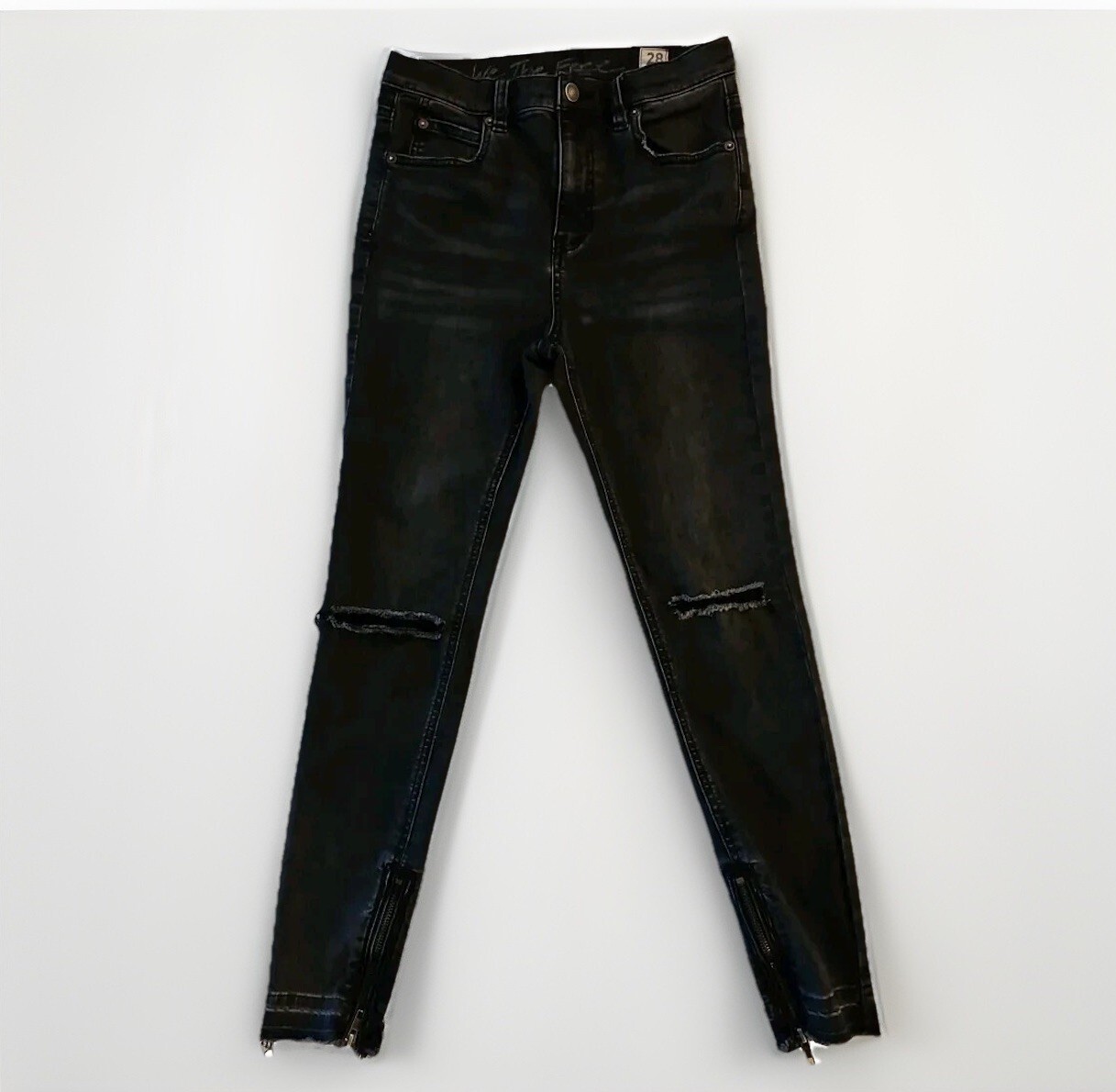 Free People Goldie High Rise Skinny Jeans Womens 28 Distresse Charcoal Ankle Zip added to cart.