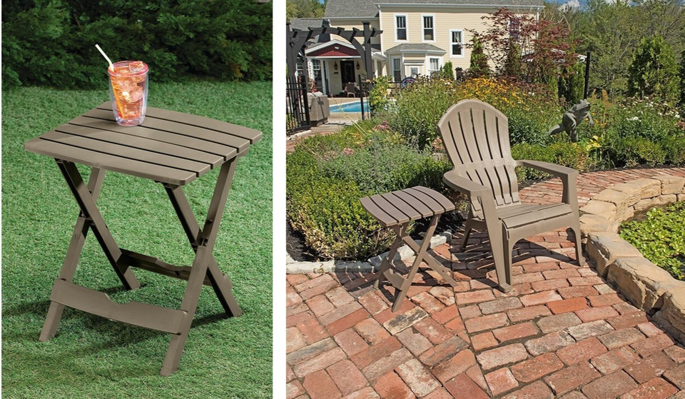 The Adams Quik-Fold Side Table is a practical and attractive solution for outdoor and indoor spaces alike. Whether you're hosting a party in your backyard, lounging by the pool, or need an extra table for your beach day, this versatile folding table has got you covered. Its durable resin construction ensures it will withstand various weather conditions, while the UV protection keeps it looking vibrant.