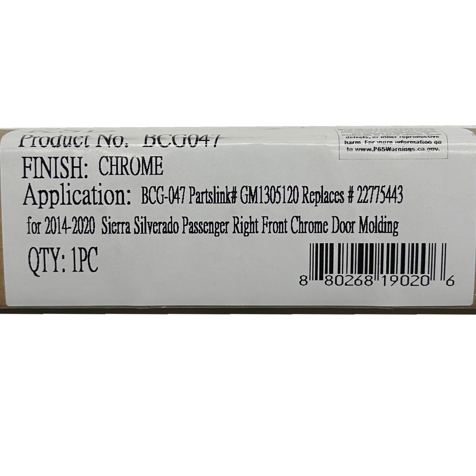 Front Passenger Side Chrome Door Molding 2014-2020 Silverado Sierra 22775443
