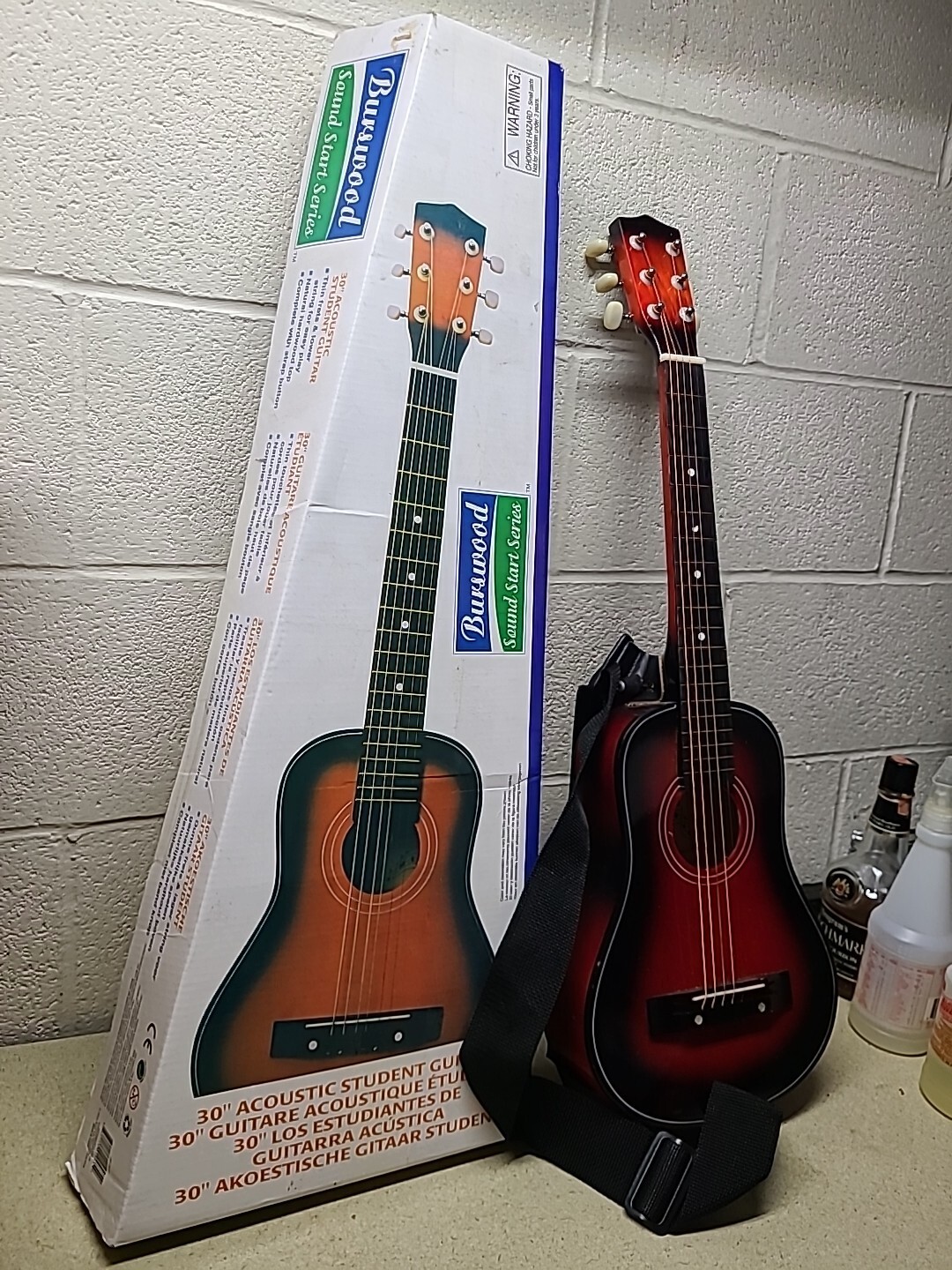 Burswood Acoustic Guitar JF-30F Black Red Missing String Vintage Mini Travel