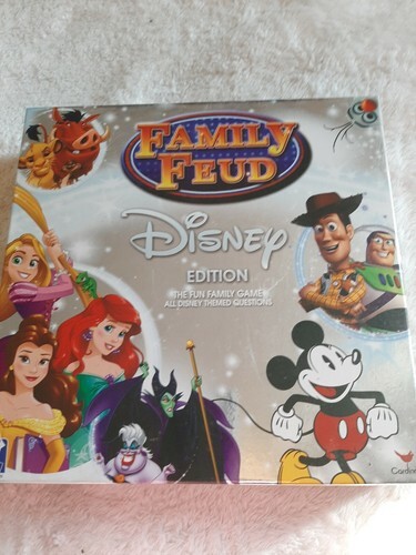 Get ready for some family fun with the Family Feud Disney Edition board game! This complete game features questions and themes based on your favorite Disney characters, perfect for boys and girls ages 8-11 and beyond. Gather at least 3 players and get ready for a challenging and entertaining game night.