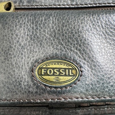 Fossil Explorer Flip Clutch Wallet Black Leather & Brass