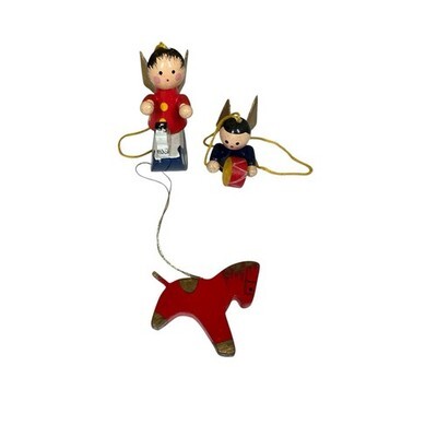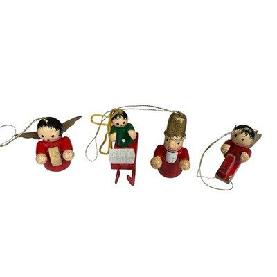 Vtg Wooden Christmas Ornament Lot of 22 Small German Style Angels Rocking Horse