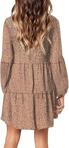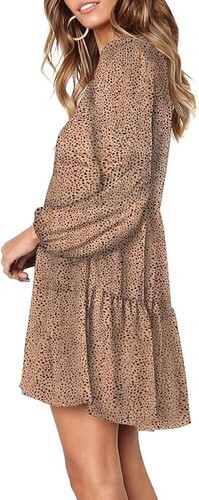 Eytino Women V Neck Long Sleeve Casual Loose Flowy Swing Shift Dress