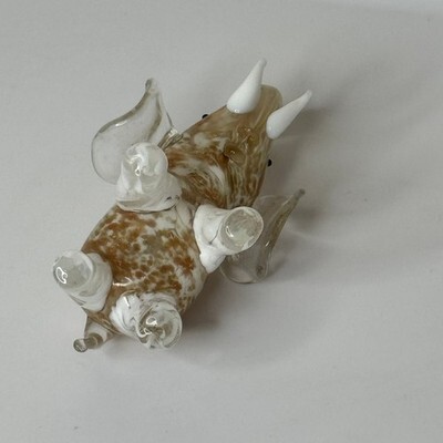Keywords: glass elephant figurine, hand blown glass, animal sculpture, desk decor, shelf decor, collectible animal, swirl glass, brown and white, trunk up elephant, charming figurine, gift for animal lover, home accent, decorative item, unique art