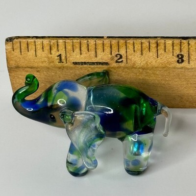 Lenox Hand Blown Glass Elephant Figurine Blue Green Swirl added to cart.