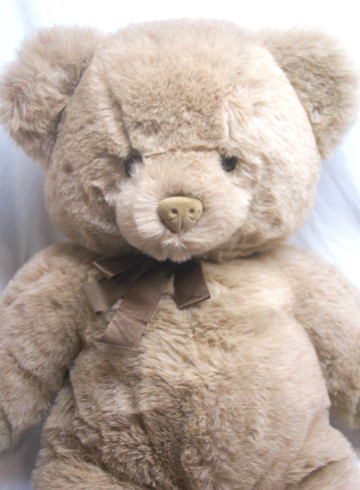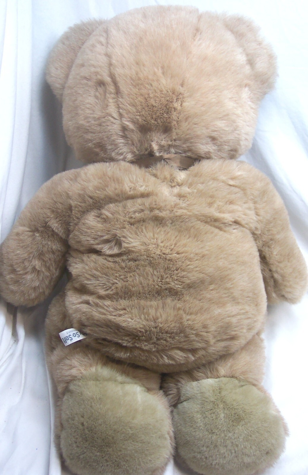 This is a VINTAGE LARGE Caress Soft Pets TAN "TEDDY SO SOFT" BEAR Plush Stuffed Animal Toy. Made by RUSS. It is 28 inches tall in standing position. It is in great condition. It is SO SOFT! It is CLEAN. There are No Stains, Tears or Defects. Combine auctions to save on shipping. Please contact me if you need to make other payment arrangements. EAG