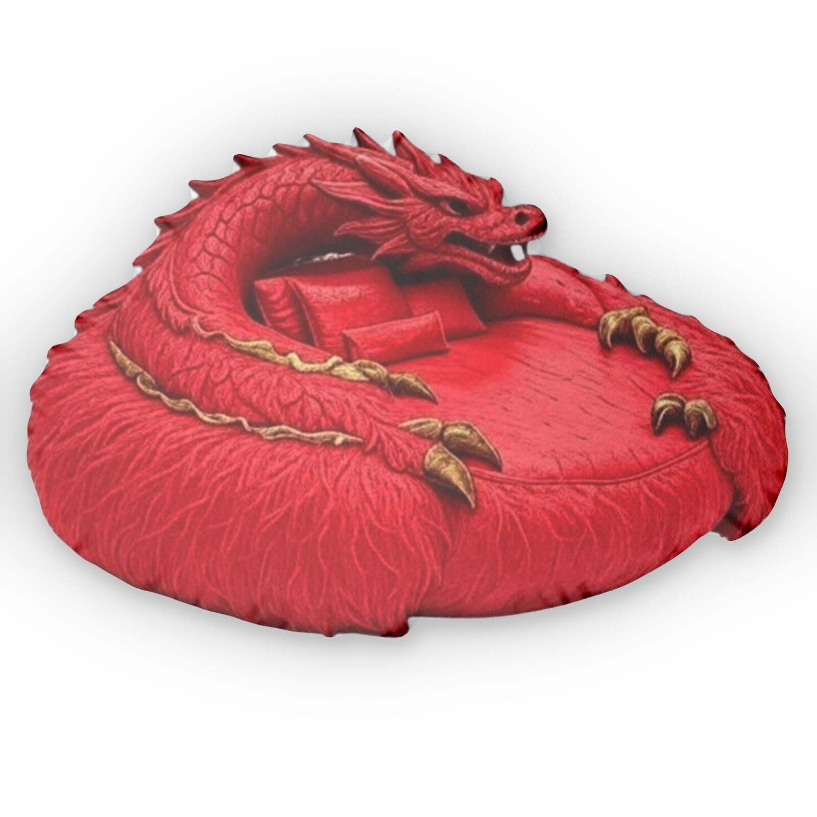 Red Mythical Dragon Lounger Faux: Luxurious Comfort in Your Home - Shaped Pillow