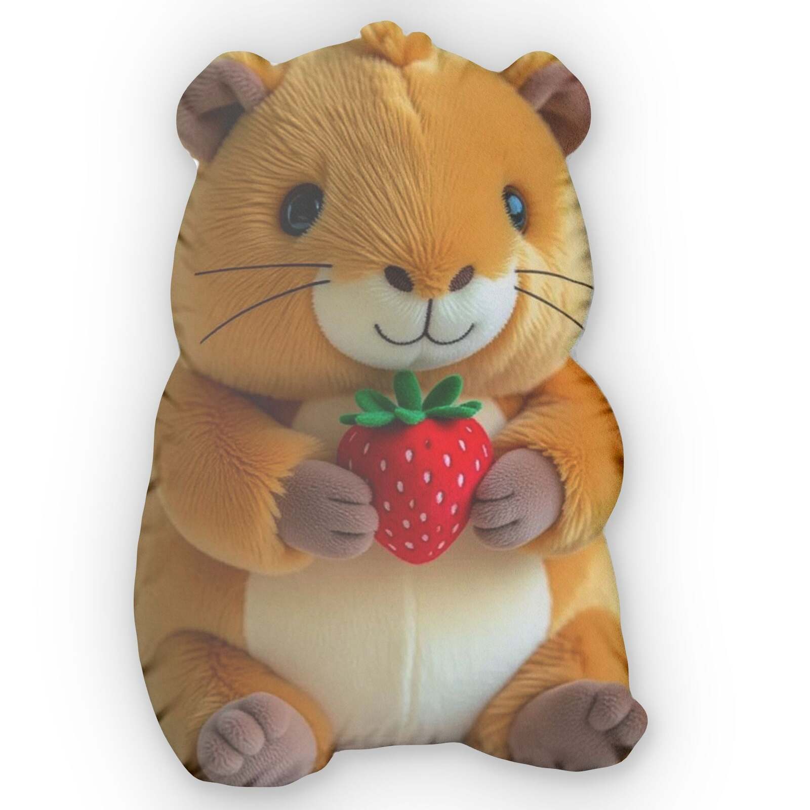 A cute and kawaii themed pillow featuring a capybara plushie with velvety chestnut fur, holding a tiny plush strawberry in its paws. This whimsical pillow adds a touch of charm to any room, perfect for those who love adorable and unique decor. Ideal for animal lovers, plushie enthusiasts, and fans of kawaii aesthetics. Great for gifts on birthdays, holidays, or special occasions.