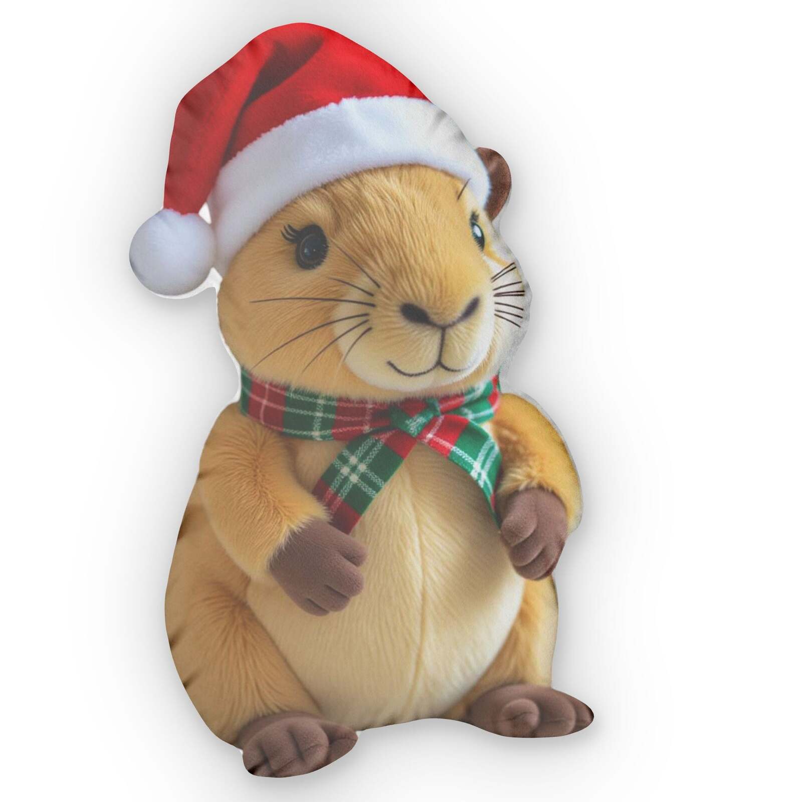 A happy Christmas-decorated capybara plushie pillow that will add a whimsical touch to your holiday decor. Perfect for anyone who loves unique and festive home accessories.
