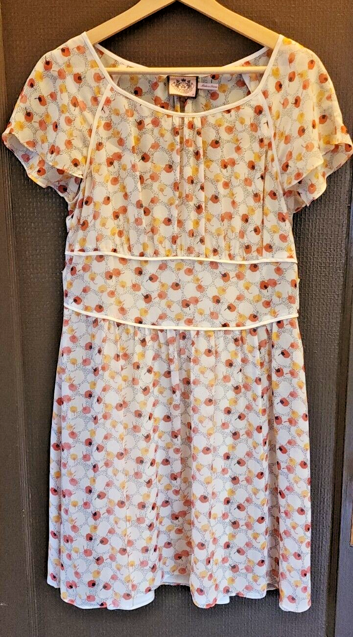 Juicy Couture Womens Cherry Jem Silk Dress Sz 10 Ruffled Cap Sleeves Easter Midi