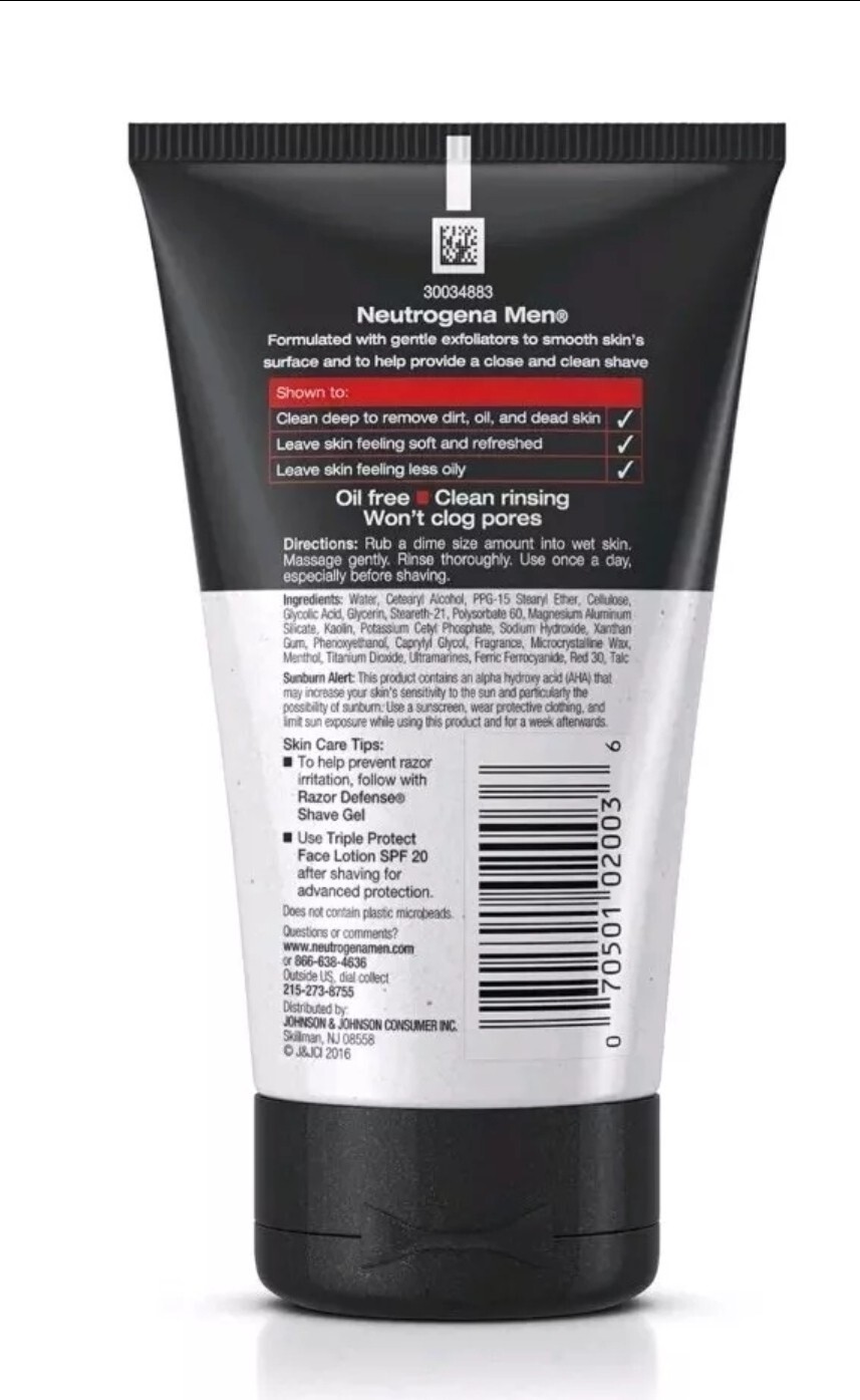 Neutrogena Men Exfoliating Razor Defense Daily Shave Face Scrub Conditioning