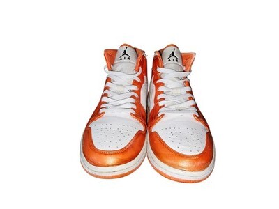 The Nike Air Jordan 1 Mid SE DM3531-800 in Electro Orange/Black White is a stylish and versatile sneaker designed for men. Featuring a mid-top silhouette and lace-up closure, this shoe is perfect for various occasions including activewear, casual outings, and workwear. The colorblock pattern with orange accents adds a vibrant touch to the classic black and white design, making it a standout choice for seasonal wear. Made with leather upper material and a rubber outsole, this athletic shoe ensures comfort and durability for activities like gym training, basketball, and more.