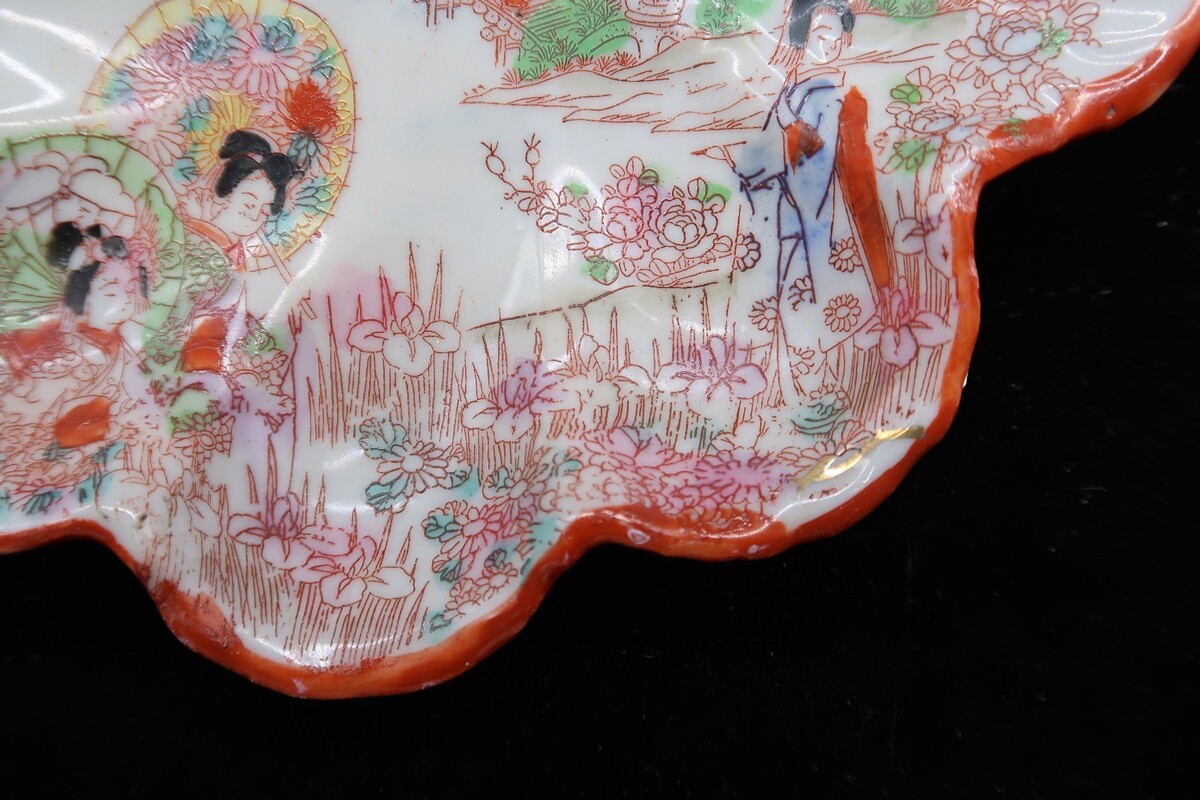 VTG Japanese Geisha Ware Moriage Nut Bowl Footed Scalloped Edge Handpainted added to cart.