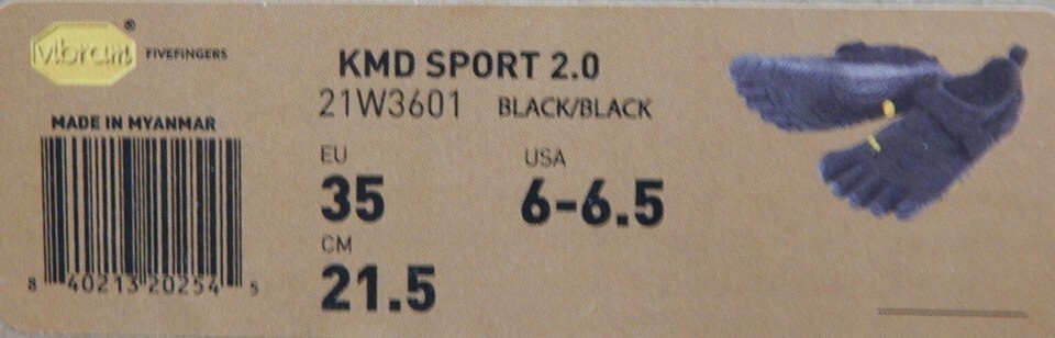 Vibram FiveFingers KMD Sport 2.0 Size US 6-6.5 M EU 35 Women's Running Shoes Black / Black 21W3601