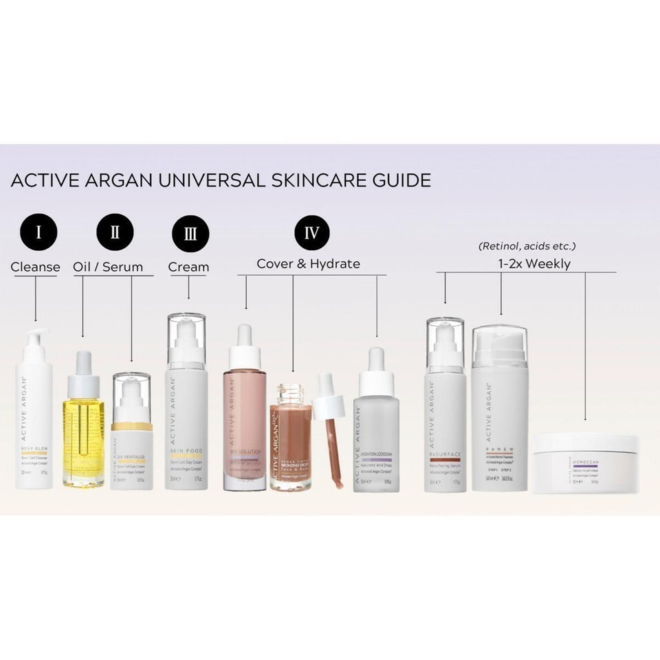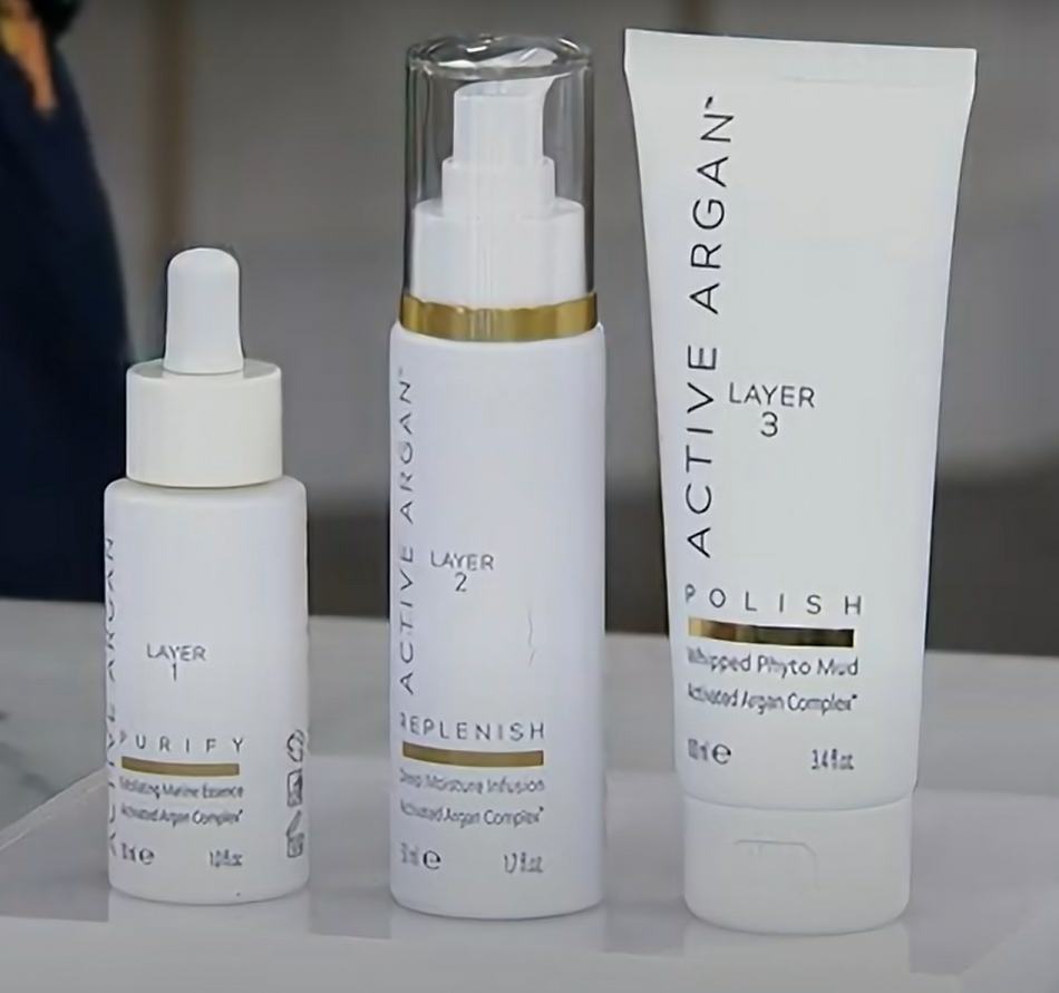 Active Argan 5-Minute Facial 1 fl oz Purify 1.7 fl oz Replenish 3.4 fl oz Polish
