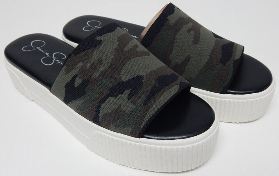 Jessica Simpson Ezira Size 8.5 M EU 39 Women's Slide Platform Sandals Green Camo