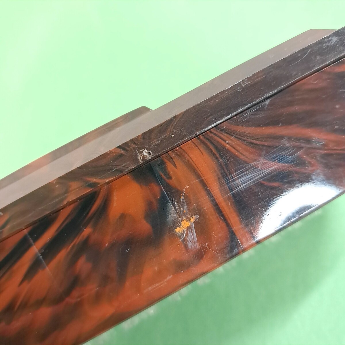 Handheld table brush sweeper or lint brush. Brown faux tortoiseshell plastic, possibly bakelite. Some minor scuffs from use. Overall very good condition.