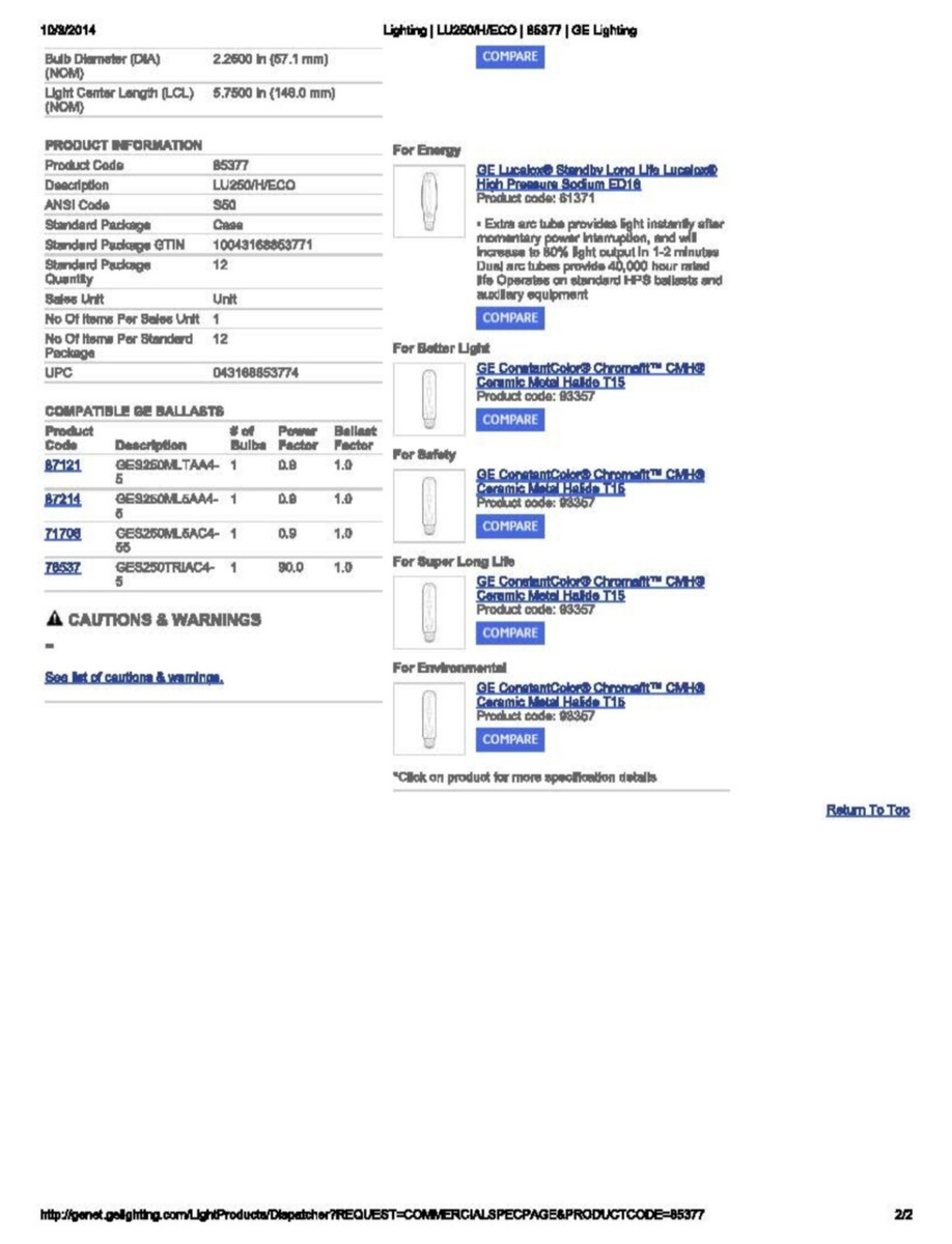 Ge 85377 Case Of 12 LU250/H/ECO 250 Watt Hps and 50 similar items