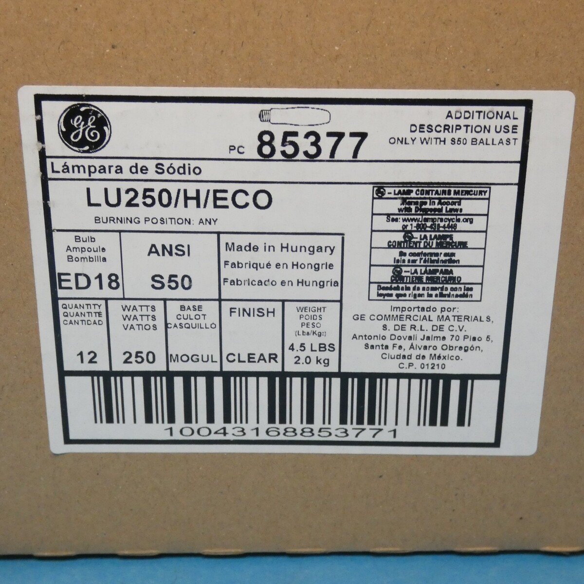 GE 85377 Case of 12 LU250/H/ECO 250 Watt HPS Mogul Base ANSI S50 ED18