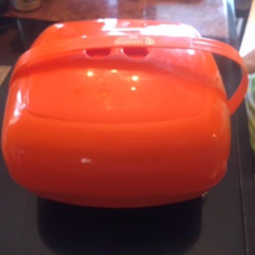 VTG Orange Plastic Picnic Basket Service Award Dinner Retro Atomic 1978