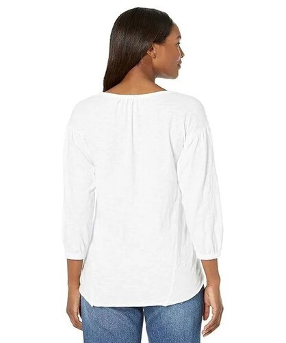 You'll fall in love with the effortless style and comfort of the Mod-o-doc Slub Jersey 3/4 Sleeve Scoop Neck Shirred Top.