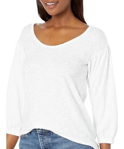 Mod-O-Doc Slub Jersey 3/4 Sleeve Scoop Neck Shirred Top White MD (US 8-10) Shirt