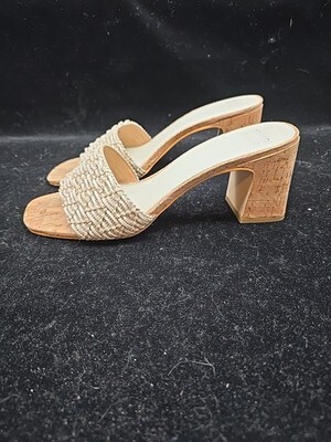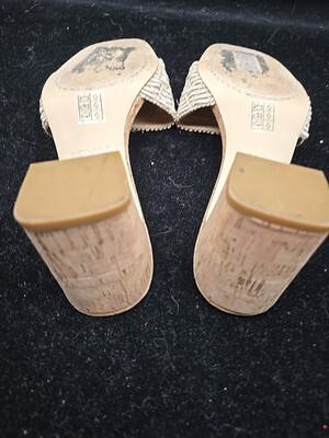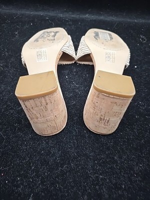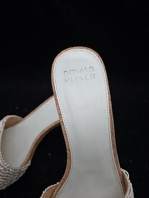 Donald Pliner Size 10 Danila Sandal Women Slide Cork Heel White Tan Worn Twice