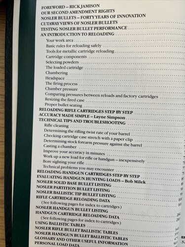 1989 Nosler reloading manual #3, 516 pages in good condition showing some sign of wear on front and back covers as referenced in images. Manual features sections on the following
