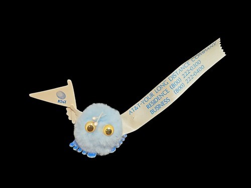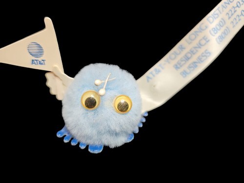 UP FOR SALE: VTG 1970s-80s AT T - Your Local Long Distance Company Wuppet Weepul Blue Googly Eye Fuzzy Pom Pom Telephone Advertising