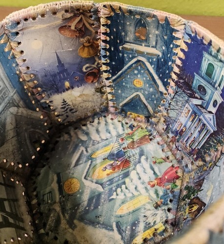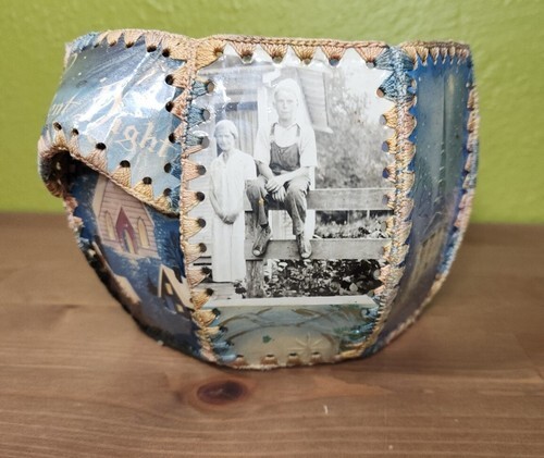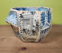 This basket has Vintage Photographs from the early 1900's as well as christmas cards from the 40's however I believe that it was actually made in the 1950s or 1960s due to the fact that the cards have been secured--oir water proofed with Clear Celluloid sheets.