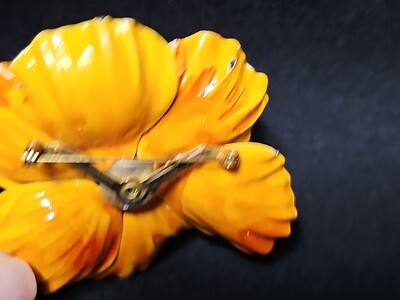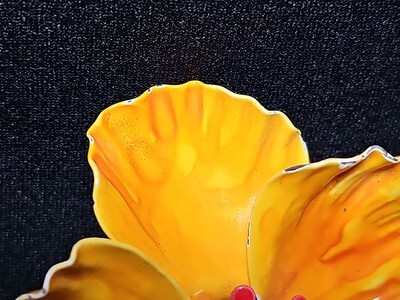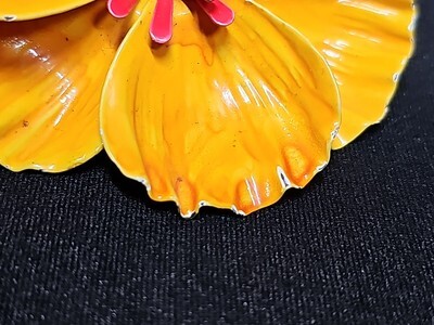 UP FOR SALE: Vintage Enamel Flower Brooch Bright Yellow Orange Red Mid Century Retro Pin