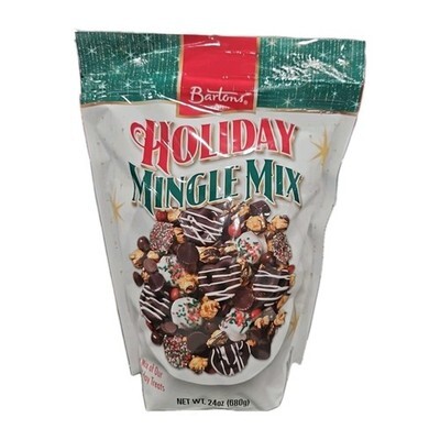 Barton's Holiday Mingle Mix is a festive and delicious chocolate sweet and assortment mix perfect for the Christmas season. With a serving size of 30g and a total of 23 servings, this 24 oz product is filled with rich chocolate flavor and has 140 calories per serving. The mix is ideal for stocking up your pantry for the holiday season and will make a sweet addition to any festive gathering or treat assortment. The mix is sure to satisfy your sweet tooth and create a cozy holiday atmosphere.