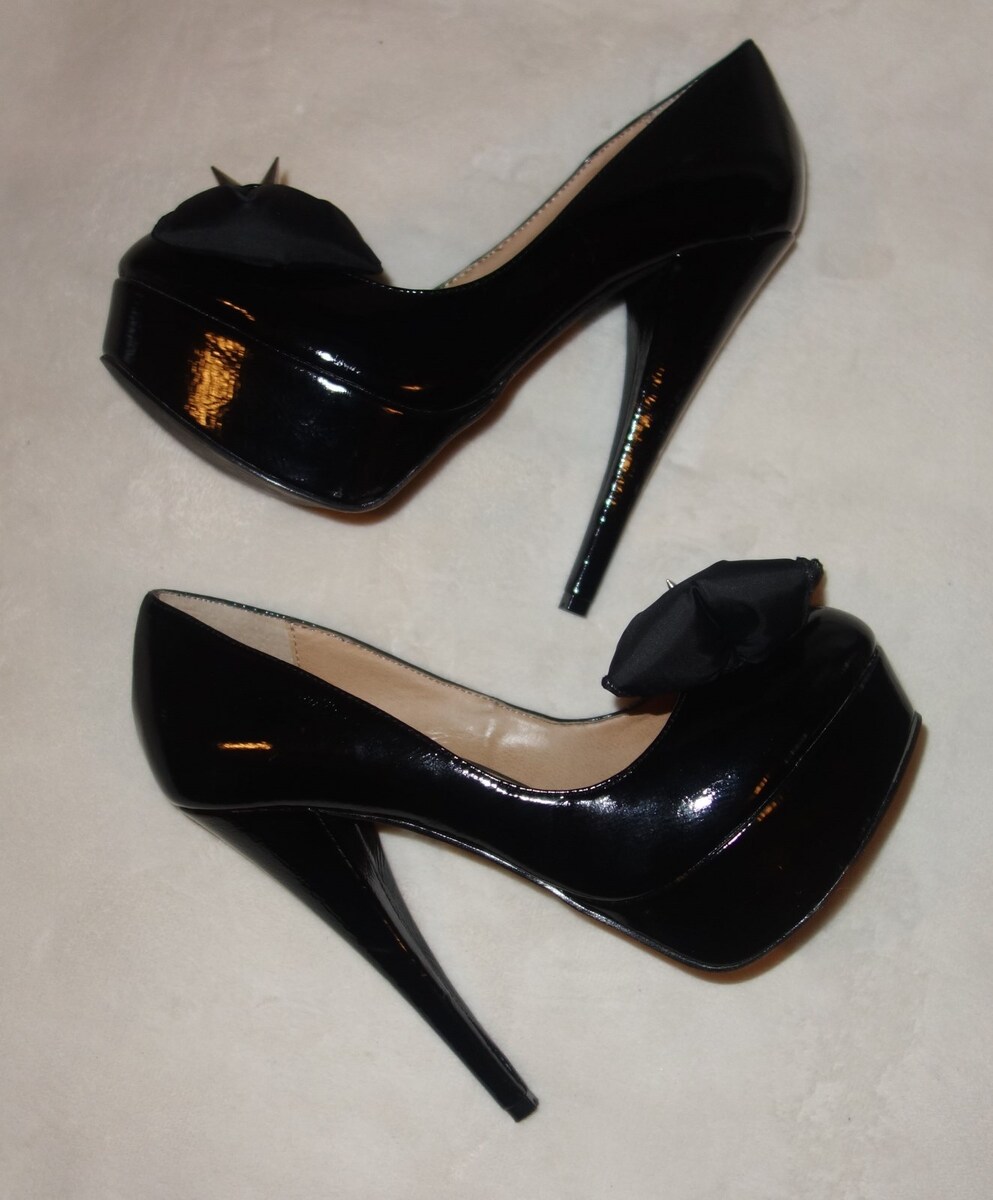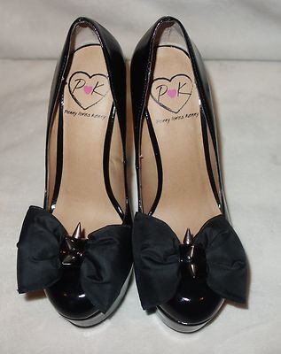 PENNY LOVES KENNY-Fay black bow and spikes Platforms Heels Shoes- SZ 6 M NEW