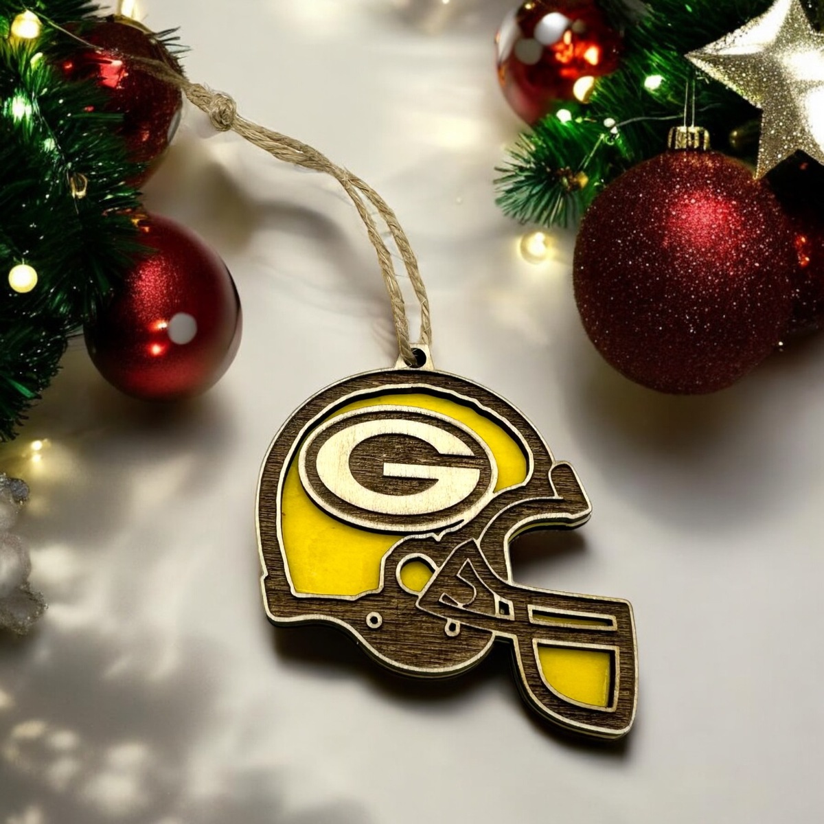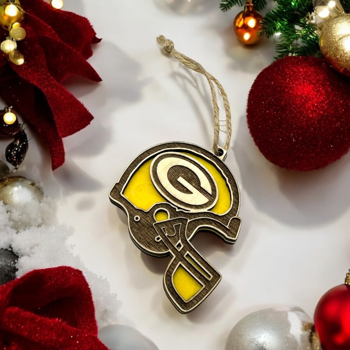 Green Bay Packers Helmet Ornament | Laser Engraved Layered Design