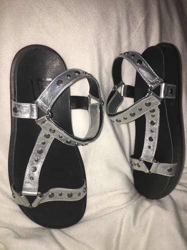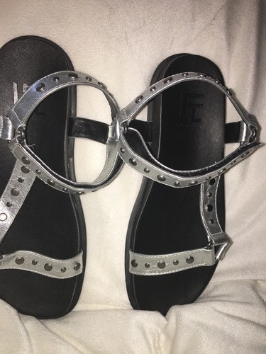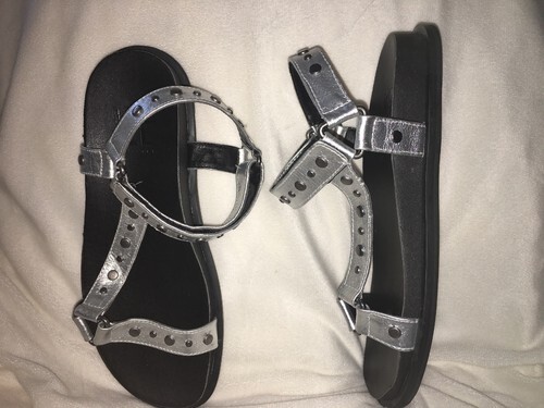LUST FOR LIFE VEDA ANKLE STRAP STUDDED WEDGE SANDAL IN SILVER sz 8.5 m