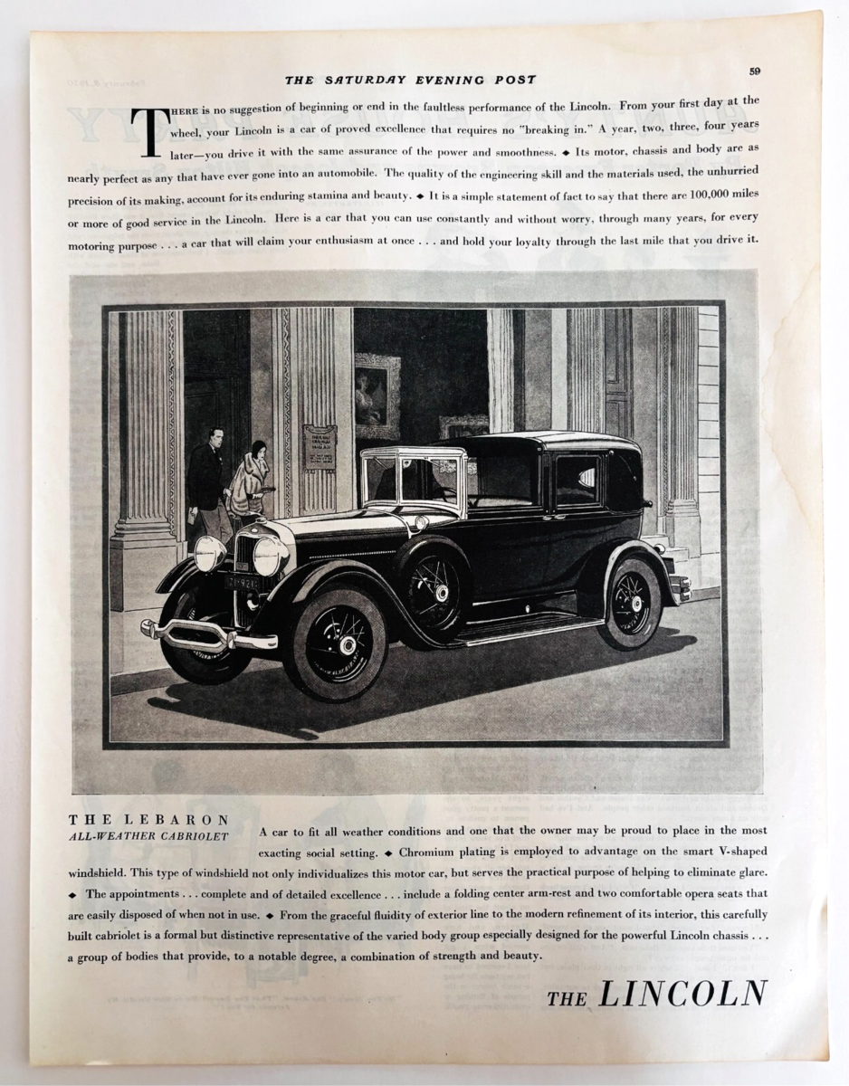 1930 Lincoln Lebaron Advertisement Automobilia Cabriolet All Weather DWWW10