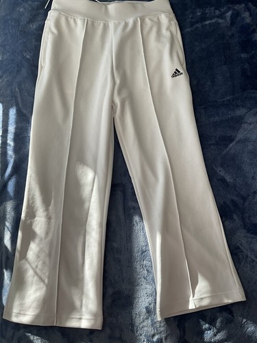 These Adidas women's drawstring Xpress flare leg jogging pants are perfect for any active occasion. The pants are made from 100% polyester and come in a beautiful white color. The drawstring closure ensures a comfortable and adjustable fit, while the wide-leg design provides ample room for movement.
