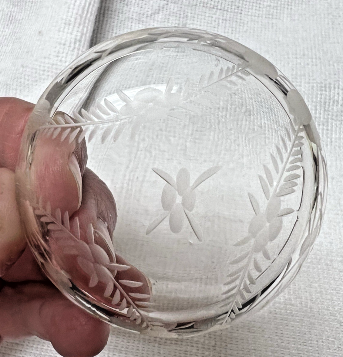 Antique Floral Etched Crystal Salt Dip and 49 similar items