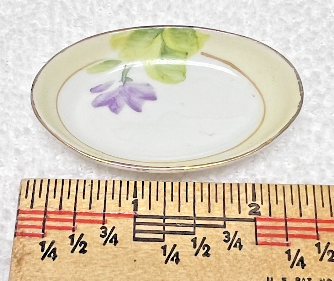 Vintage Noritake Purple Floral Hand Painted Gold Open Salt Dip Oval 2 3/8 x 1.5 x 3/8 inches in great shape