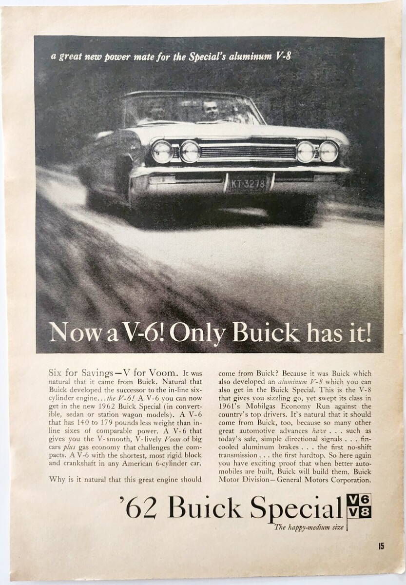 1962 Buick Special V6 Car Advertisement Automobilia Medium Size Vehicles DWF28