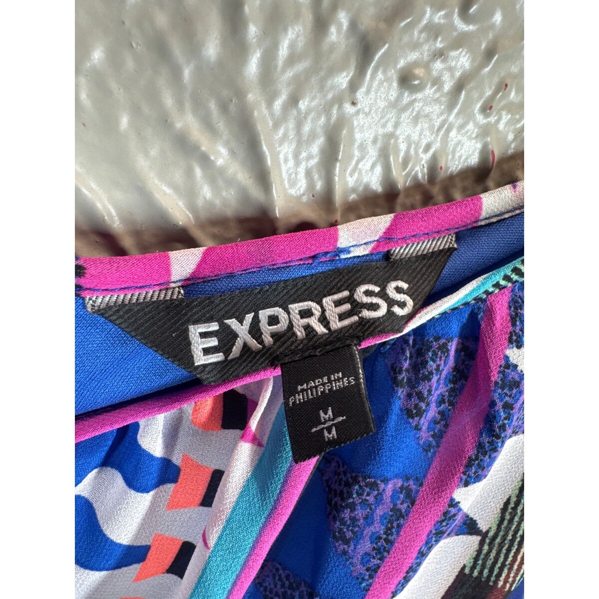 Express Bold Geometric Print Casual Shift Dress Pink Blue Purple Size Medium