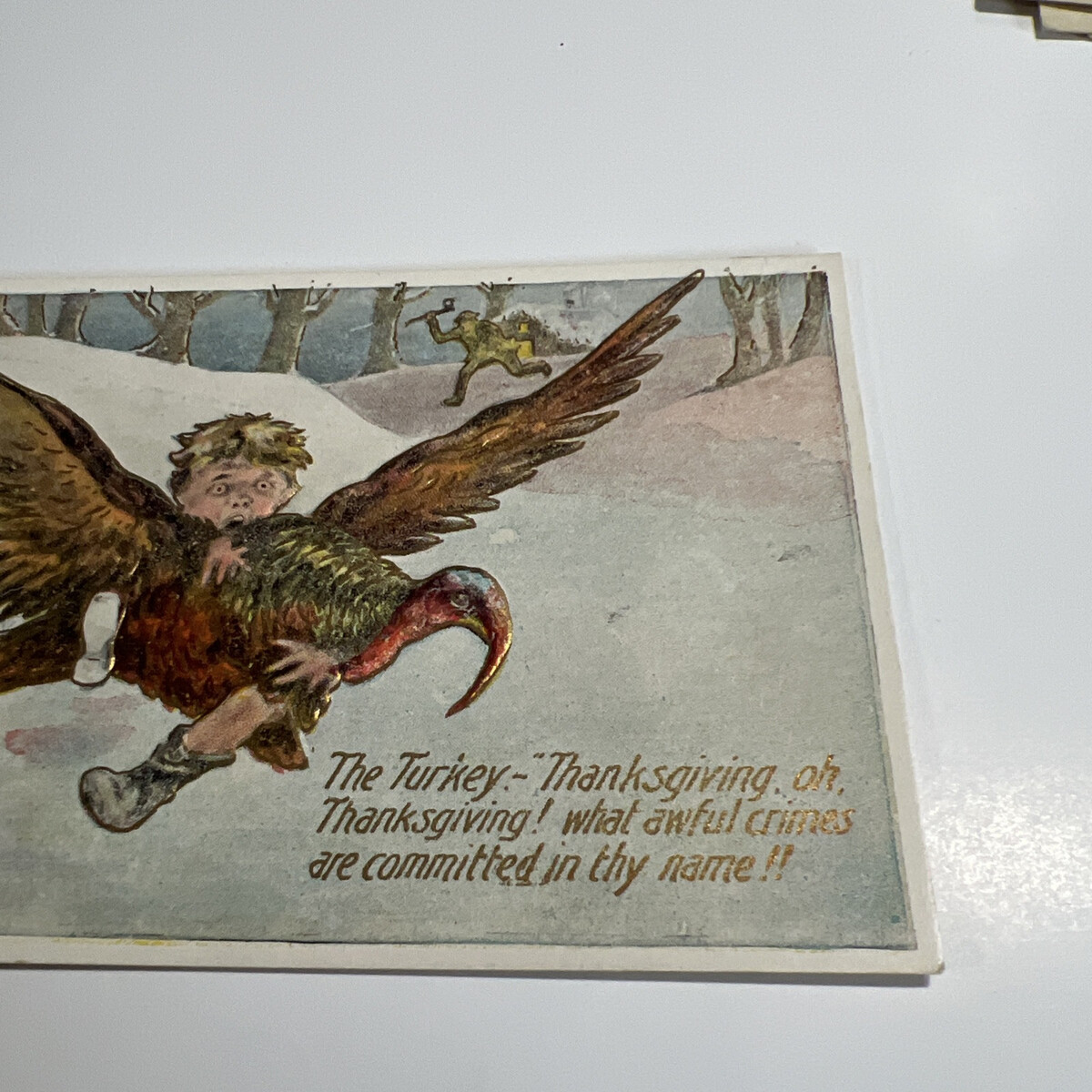 1907 FC Lounsbury Thanksgiving Postcard Boy Tries to Save Turkey from Axe Man