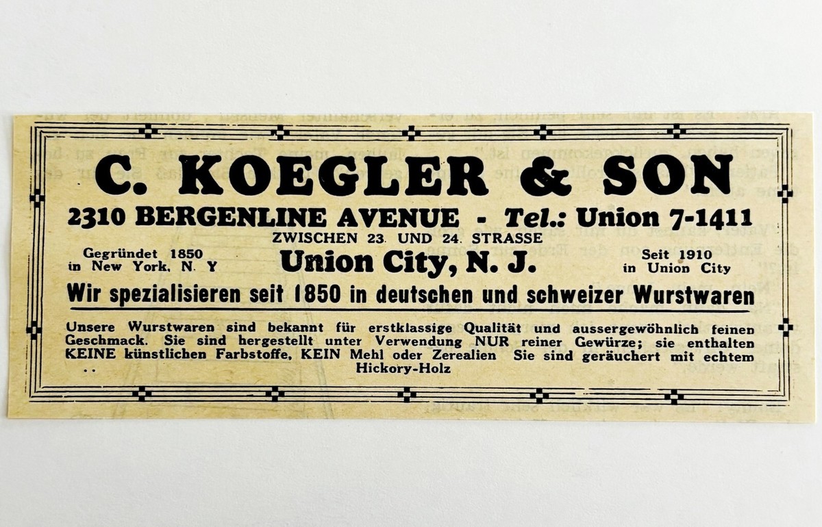 1945 WW2 German-USA Koegler Advertisement Sausage Specialists Union City NJ C94C