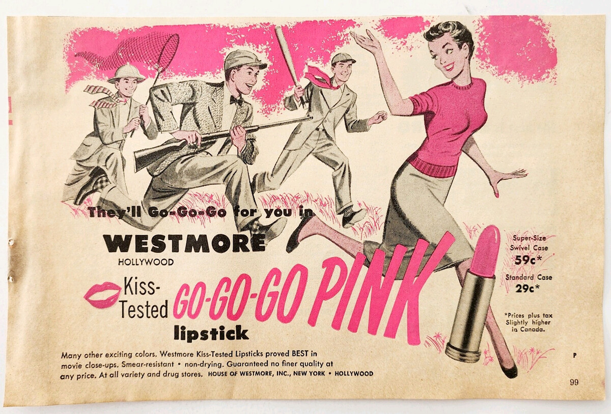 1955 Westmore Go Go Go Pink Lipstick Advertisement Beauty Cosmetics DWQQ7