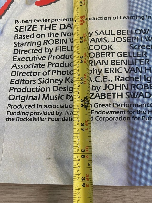 Original 1986 “Seize The Day” Movie Poster 39” x 26” MH